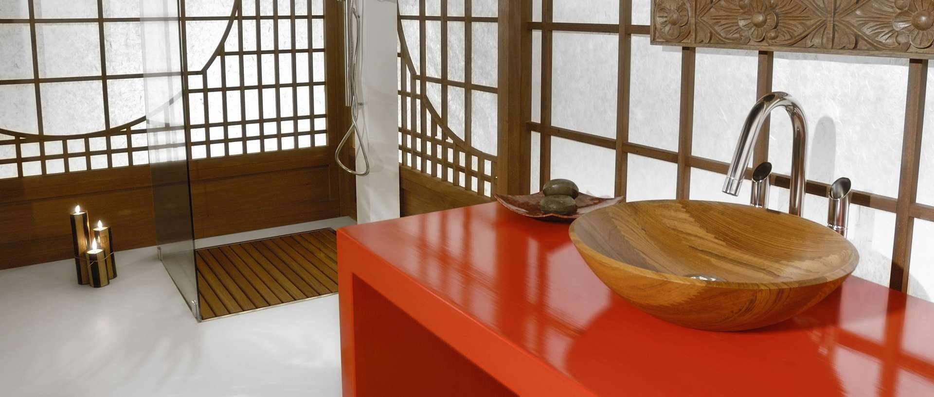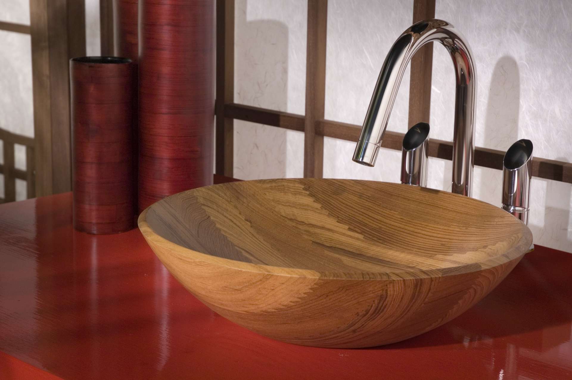 Round standing washbasin in Burmese Teak without overflow, can be matched with wall taps or taps on border of basin on top. Uses drain 063 GO including round plug (permanently open plug).
